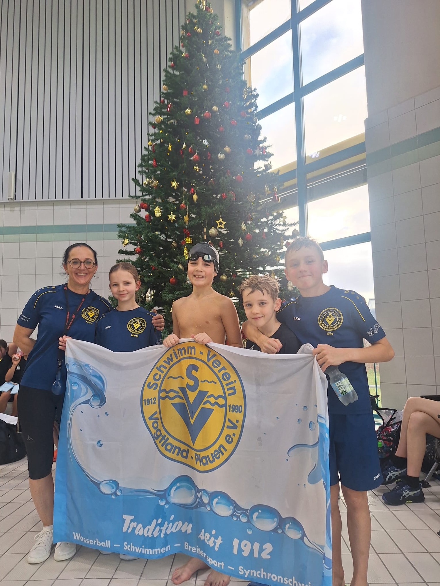Am vergangenen Wochenende (06./07.12.2025) fand in Riesa das traditionelle Schwimmfest unterm Tannenbaum statt. Insgesamt traten 433 Schwimmerinnen und Schwimmer aus 30 Vereinen in über 2126 Starts gegeneinander an. Am ersten Wettkampftag standen für die Jahrgänge 2017/2016 die 50 Meter Delphinbein-, Rücken-, Brust- und Freistilstrecken sowie die 100 Meter Lagendisziplin auf dem Programm.