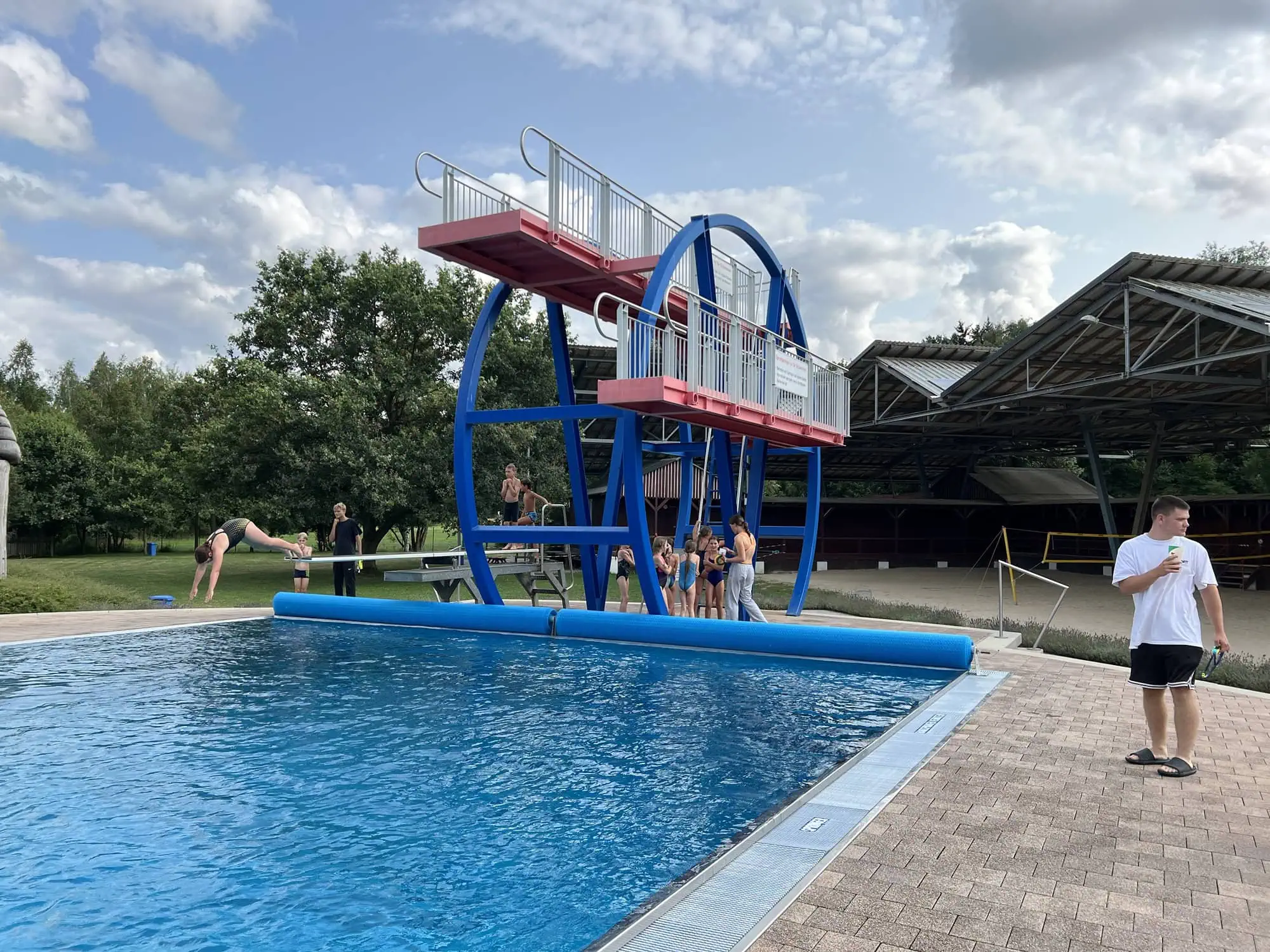 So erwanderten wir bei fast tropischen Temperaturen das Röhrholz, bestaunten eine Blindschleiche, das Mosendenkmal und die Räuberhöhle. Für Abkühlung sorgten Eisessen, fröhliches Springen vom 1-m-Brett, vom 3-m- oder 5-m-Turm bzw. das Baden.