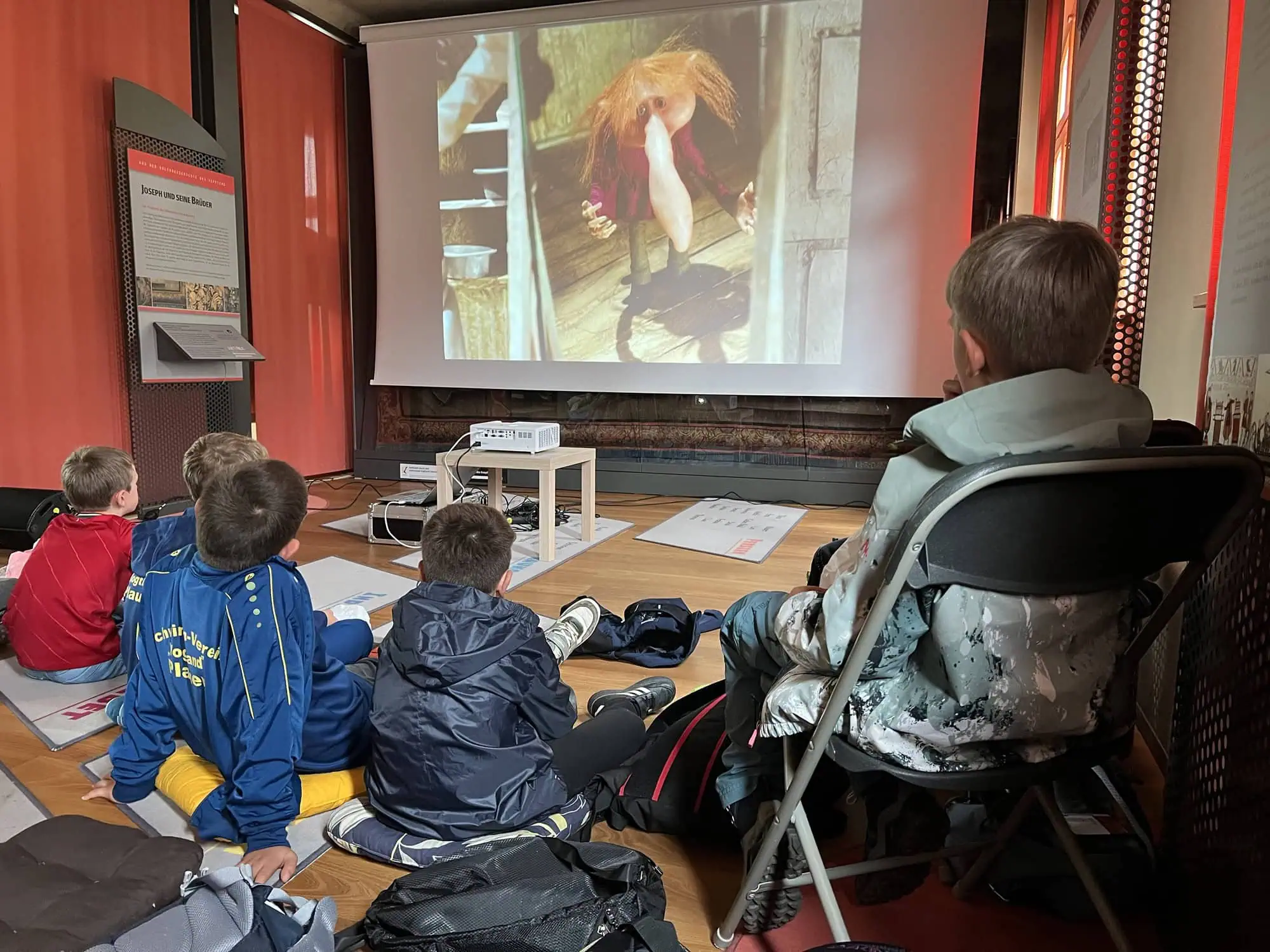 Gemeinsam mit den Trainern und Betreuern wanderten die Kinder zum Schloss Voigtsberg und erlebten dort einen schönen Kinonachmittag mit mehreren Defa-Filmen und Popcorn.