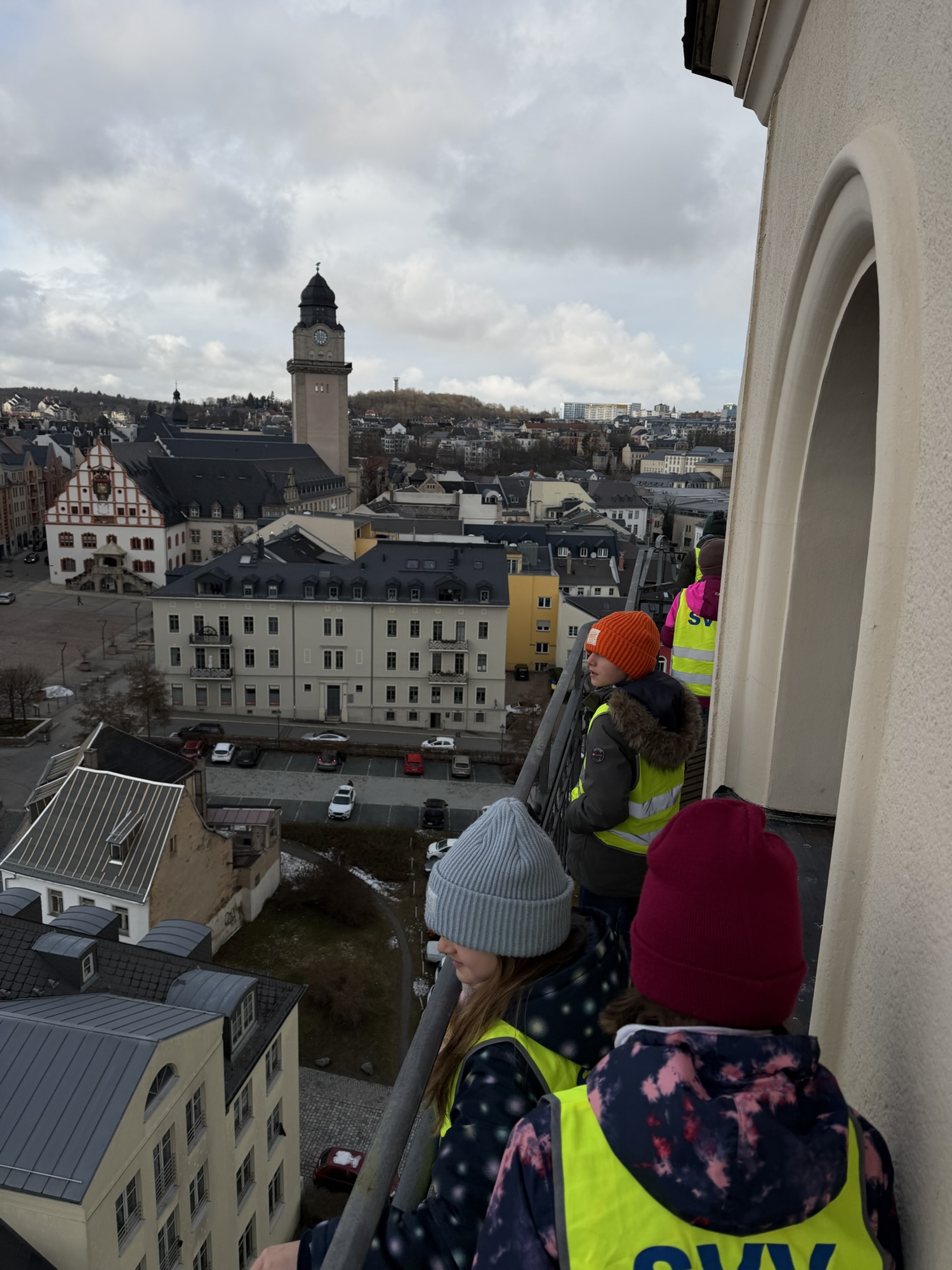 Bei der Führung durch die Plauener Johanniskirche ging es am Mittwoch hoch hinaus. Nach vielen Stufen wurden die Kinder mit einem beeindruckenden Blick über Plauen belohnt. Die Geschichte der Kirche wurde kindgerecht erklärt und machte für uns die Stadtgeschichte lebendig.