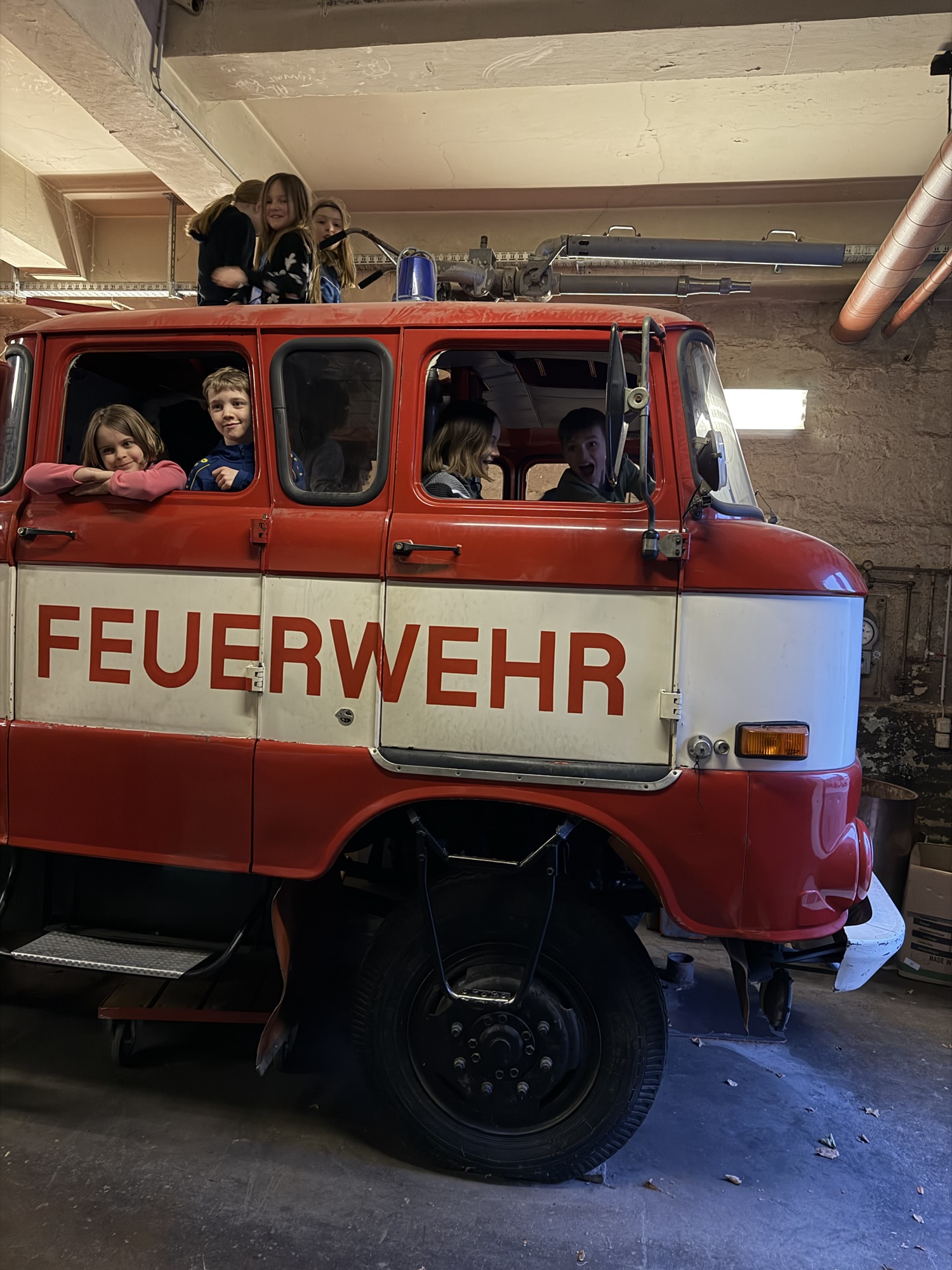 Ein weiteres Highlight der Woche war das Rutschen an der Feuerwehrstange, worum uns die Kinder eines anderen Vereines sehr beneideten. Zusätzlich durften wir in diesem Jahr noch in einem alten Feuerwehrauto Platz nehmen. Das war für alle Kinder ein tolles Erlebnis.